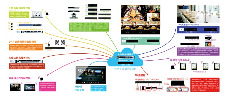 MIDIS可以應(yīng)用在會(huì)議室、行政中心、星級(jí)酒店、多功能廳、宴會(huì)廳、智慧校園、電子法庭、指揮中心等場(chǎng)所,MIDIS為多媒體信息系統(tǒng)提供全新的解決方案。
