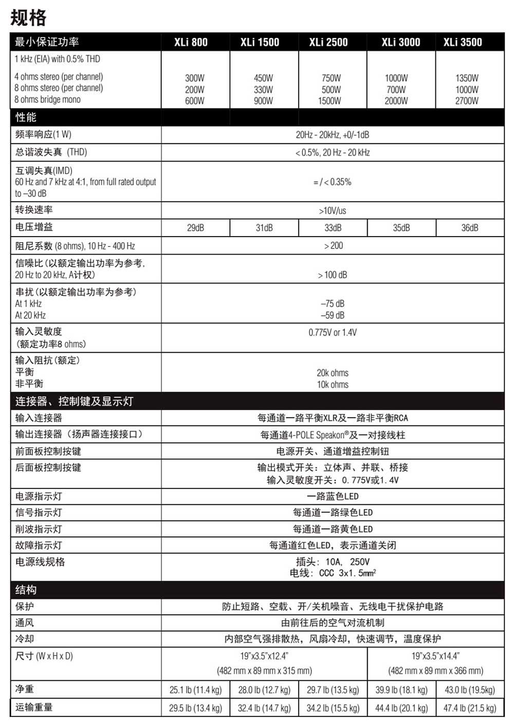 XLi系列功放的主要特點: